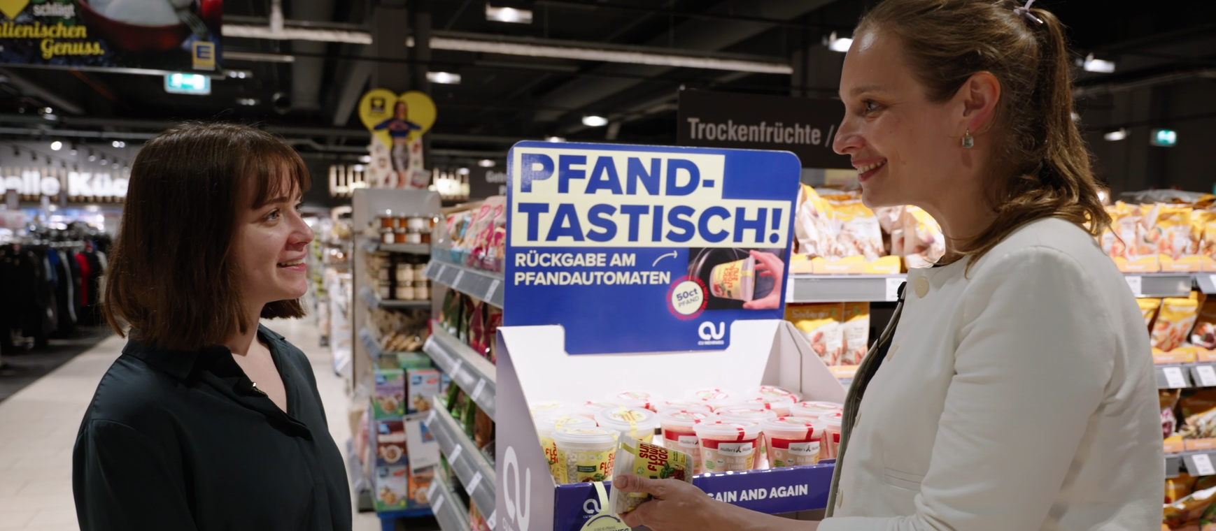 CU AGAIN statt Gelber Sack: So lautet das Motto des Mannheimer Startups CU Mehrweg. Mit ihrer selbst entwickelten CU-Box bietet es Handelsmarken eine Verpackung an, die immer wieder neu befüllt werden kann. Das Versprechen „leicht, langlebig und wiederverschließbar“ überzeugt Unternehmen wie Seeberger, Sunflowerfamily GmbH oder Müller's Mühle GmbH, die die CU-Box für ihr Sortiment bereits nutzen. Dr. Stefanie Ramsauer ist Fachanwältin für Verwaltungsrecht bei GvW und hat CU Mehrweg seit ihrer Gründung im Verpackungsrecht beraten. Wir sind in einem Marktkauf in Weinheim, um uns von Unternehmensgründerin und Geschäftsführerin Tatiana Tsarkova das Produkt und den Produktkreislauf zeigen zu lassen.
